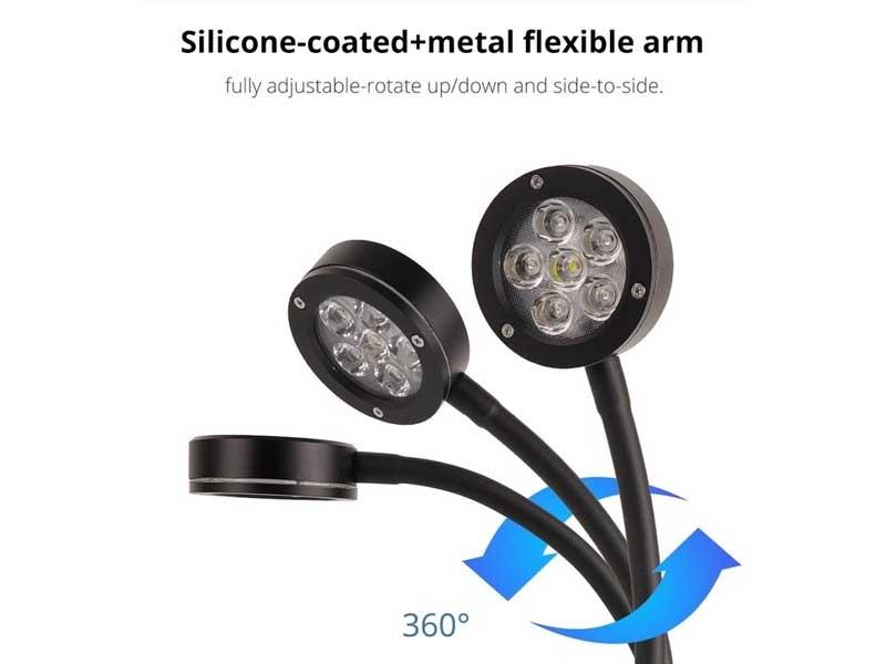 Đèn được mix sẵn màu với 6 bóng: gồm 1 bóng trắng (6500k), 4 bóng xanh (450nm) và 1 bóng tím (420nm) với công suất mỗi bóng là 3w. Khi sử dụng chỉ cần bật – tắt rất đơn giản.